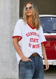 Product Description Cat Hammill V Neck Ringer Tee White/Red Sunshine State Of Mind, White burnout fabric Same beautiful oversized fit