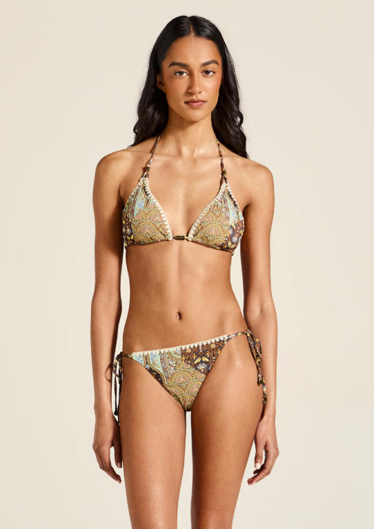 Product Description Tigerlily Marin Patchwork Tara Triangle Bikini Top Soft Cup support and tie neck and back.